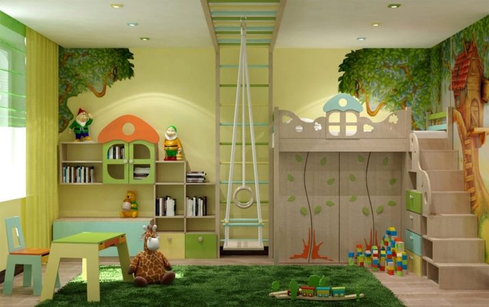 بالنسبة للأطفال الأكبر سنًا ، يُفضل اختيار الأسقف الصلبة ، ولكن في نفس الوقت يمكنك اللعب بالألوان.