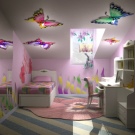 ستكون الرسومات على شكل فراشة مناسبة أيضًا في غرفة الفتاة..