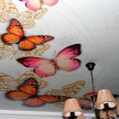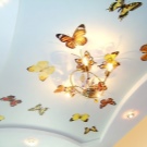 لعب الضوء تحت الأسقف المعلقة. نمط الفراشة مصنوع من المصابيح. سوف يسعد طفلك لفترة طويلة.