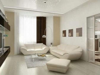 لا ينبغي أن تكون الأجزاء الداخلية لمناطق المعيشة الصغيرة محملة بالكثير من العناصر الزخرفية.. أيضًا ، يجب ألا تضع قطعًا ضخمة من الأثاث في مثل هذا التصميم. من الأفضل اختيار نظام ألوان فاتح (ألوان باستيل). في الوقت نفسه ، يجب تجنب الظلال الداكنة القاسية..