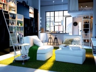 نوع عصري من المساكن اليوم هو شقة استوديو. كقاعدة عامة ، تتميز هذه المساكن بأبعاد صغيرة. يمكن وضع غرفة المعيشة وغرفة النوم والمطبخ ومنطقة الأطفال في نفس الوقت في مكان واحد. في هذه الحالة ، من الأفضل استخدام هياكل تقسيم صغيرة..