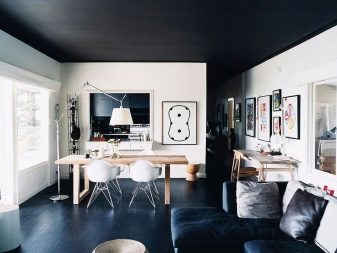 يوصي العديد من المصممين بإنهاء الأسقف في المساحات الصغيرة بظل أغمق من الجدران. هذا الحل سيجعل منزلك متناغمًا. من المقبول وجود جميع أنواع الإدخالات والرسومات ذات الألوان الأخرى على الطلاء. ولكن مع ذلك ، تعتبر المادة البسيطة هي الخيار الاقتصادي الأكثر قبولًا..
