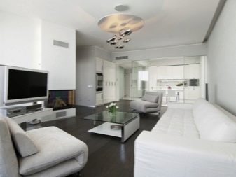 عند ترتيب مساحات المعيشة في لقطات صغيرة ، يجب ألا تنسى الإضاءة. تحتل مكانًا مهمًا إلى حد ما في التصميم. من خلال اختيار تركيبات الإضاءة المناسبة ، يمكنك إضفاء جو لطيف على القاعة وجعلها أكثر اتساعًا بصريًا..