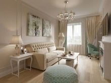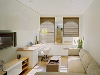 لا ينبغي أن تكون الأجزاء الداخلية لمناطق المعيشة الصغيرة محملة بالكثير من العناصر الزخرفية.. أيضًا ، يجب ألا تضع قطعًا ضخمة من الأثاث في مثل هذا التصميم. من الأفضل اختيار نظام ألوان فاتح (ألوان باستيل). في الوقت نفسه ، يجب تجنب الظلال الداكنة القاسية..