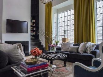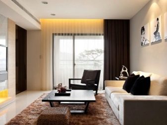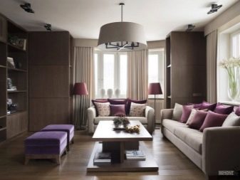 من الأفضل اختيار الستائر بلون الشوكولاتة. يجادل بعض المصممين بأنه بالنسبة للستائر ، يجب استخدام الأقمشة العادية بشكل أساسي بدون أنماط وأنماط. في وسط غرفة المعيشة ، يمكنك وضع طاولة قهوة من الخشب الداكن. ستضيف قطعة الأثاث هذه الصلابة والرقي إلى الداخل..
