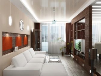 يمكنك غالبًا العثور على مشروع تصميم لغرف المعيشة بمساحة 18-19 مترًا مربعًا ، حيث يتم دمج القاعة مع مساحة الشرفة. من الممكن تمامًا ترتيب لوجيا ضيقة في نفس المساحة بغرفة صغيرة. أيضًا ، سيكون هذا الخيار قادرًا على جعل إضاءة المساحة أكثر تشبعًا ، مما سيزيد بصريًا من حجم منطقة المعيشة..