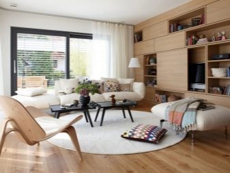 تعتبر مسألة تزيين الأسقف والجدران والأرضيات هي القضية الرئيسية عند ترتيب منطقة المعيشة. يوصي معظم المصممين باستخدام الأرضيات الخشبية الخفيفة في المساحات الصغيرة. يمكن للسجادة الرقيقة ذات اللون الأكثر إشراقًا (الأزرق والأصفر والبرتقالي والرمادي الفاتح والأخضر والأرجواني) أن تضفي رقيًا خاصًا على الداخل. سوف يتناسب هذا العنصر تمامًا مع أي منطقة معيشة تقريبًا..
