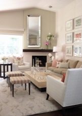 في منزل خاص صغير ، عند ترتيب الغرفة ، من الأفضل أيضًا استخدام ألوان فاتحة مختلفة (رمادي ، بيج ، بني ، كريمي ، أبيض ، خردل). هذه الظلال مثالية لمنازل الضواحي. ستجعل حلول الألوان هذه من الممكن إنشاء أسلوب فريد وجميل في الداخل..