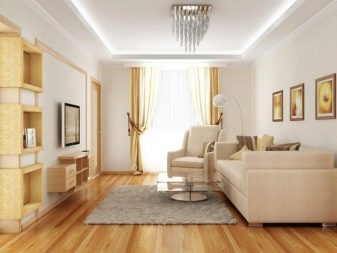 عند تزيين القاعة ، من المهم أن يقرر أصحابها ما إذا كانت الغرفة ستُستخدم كغرفة معيشة فقط ، أم أنها ستجمع بين منطقة نوم للأطفال أو منطقة نوم. ينصح العديد من المصممين ، عند ترتيب غرفة في شكل مستطيل ، بتقسيم المساحة باستخدام أقسام رقيقة. علاوة على ذلك ، يجب أن يكون لونها أغمق قليلاً مقارنة بنبرة الجدران الأخرى..