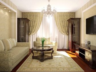 هذا التصميم هو مزيج جميل من التناسق والرفاهية البسيطة. في الإصدار الكلاسيكي ، تم تزيين غرفة المعيشة بالرخام والخشب ، وتمتلئ الغرفة بأقمشة باهظة الثمن وعناصر من الحديد المطاوع. تعتبر المدفأة الزخرفة الرئيسية للقاعة. بالنسبة للجدران ، كقاعدة عامة ، يختارون ورق الحائط بخطوط عمودية أو أزهار صغيرة ؛ تبدو جميلة على خلفية السجاد والأثاث اللامعين. كغطاء للأرضيات ، يعتبر كل من البلاط الرخامي أو الفسيفساء والباركيه المصنوع من الخشب الطبيعي مناسبًا..