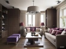 الخزانات المدمجة والأرفف الصغيرة والرفوف مناسبة لغرفة المعيشة الضيقة.. في حالة دمج القاعة مع المطبخ ، يجب أن تكون هناك طاولة كبيرة في الوسط ، والتي ستكون بمثابة مكان ممتاز لحفلات العشاء والاحتفالات العائلية. بالنسبة لغرفة المعيشة التي تحتوي على نافذة كبيرة ، يعد تركيب مدفأة فكرة جيدة..