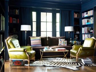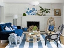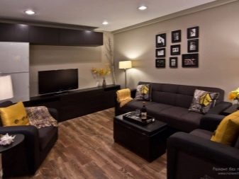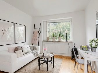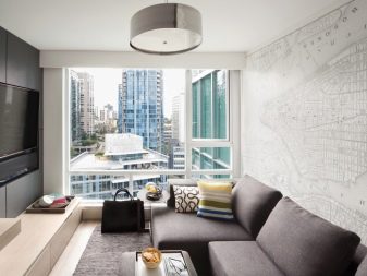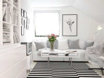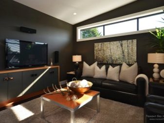 أما بالنسبة للزخرفة ، فمن المستحسن إعطاء الأفضلية للعناصر المحايدة., والتي تتناغم بشكل جيد مع المظهر العام للغرفة. يمكن تزيين الجدران بلوحات ، بينما تحتاج إلى اختيار تركيبات مشرقة جدًا أو بالأبيض والأسود. سيتم استكمال غطاء الأرضية في الأصل بالسجاد بدون أنماط وتصميمات ، وستكون مناسبة في منطقة الترفيه ، ويمكن تزيين النوافذ بالستائر والستائر الأنيقة. ستساعد النباتات الداخلية الكبيرة وحوض السمك مع الأسماك على تخفيف الجو في الغرفة..