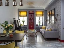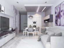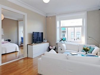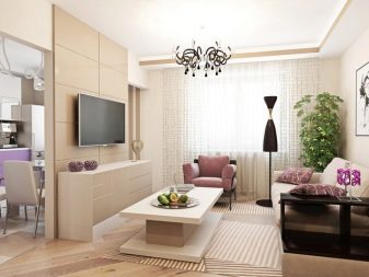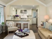 أصبح من المألوف اليوم الجمع بين غرفة المعيشة والغرف الأخرى. هذا لا يسمح فقط بتنفيذ التخطيط الصحيح ، ولكن أيضًا يجعل المساحة مريحة. الأكثر شيوعًا هو الاتصال بين الصالة والمطبخ ؛ فهو مناسب تمامًا للغرفة المستطيلة. غالبًا ما يجمعون بين منطقة لتناول الطعام ومكان للراحة في شقة من غرفة واحدة ، حيث يؤدي نقص المساحة إلى توفير كل سنتيمتر مربع. يمكنك تمييز المناطق الفردية باستخدام طاولة البار والأثاث..