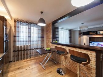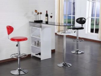 سيصبح الشريط نفسه عنصرًا داخليًا ملحوظًا ولكنه غير مكتمل. بادئ ذي بدء ، يحتاج إلى مقاعد بار خاصة. من أجل الراحة ، يجدر اختيار أولئك الذين لديهم وظيفة ضبط الارتفاع. عند اختيار الموديلات بمسند ظهر أو بدونه ، سيكون عليك الاختيار بين الراحة (الخيار الأول) والأناقة (الثانية).