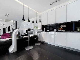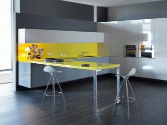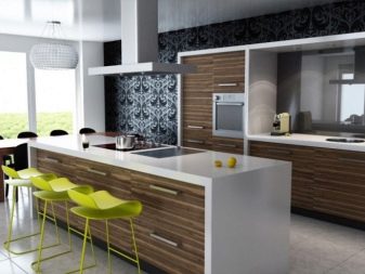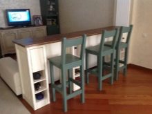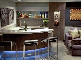 سيصبح الشريط نفسه عنصرًا داخليًا ملحوظًا ولكنه غير مكتمل. بادئ ذي بدء ، يحتاج إلى مقاعد بار خاصة. من أجل الراحة ، يجدر اختيار أولئك الذين لديهم وظيفة ضبط الارتفاع. عند اختيار الموديلات بمسند ظهر أو بدونه ، سيكون عليك الاختيار بين الراحة (الخيار الأول) والأناقة (الثانية).