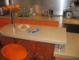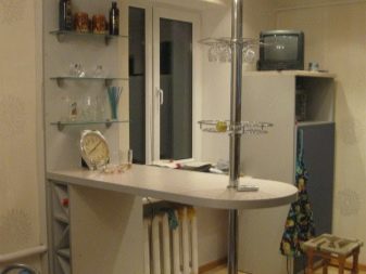 يمكن أن يكون طاولة البار قطعة أثاث مستقلة مدمجة مع جدار أو قطعة أثاث كبيرة أخرى. إذا لم تكن الشقة محرومة من المساحة ، فمن الأفضل أن يكون لديك طاولة بار مع جزيرة: بهذه الطريقة ستشبه طاولة عادية ، ولكن في نفس الوقت تضيف لمسة جمالية غير عادية. في مثل هذه الحالات ، عادة ما يتم اختيار الخيارات ذات سطح الطاولة الكبير. تأتي الموديلات الكبيرة بغطاء من قطعة واحدة وغطاء منفصل..