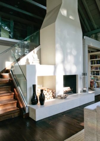 هناك بساطة وعقلانية في فن الآرت نوفو الحديث. يختلف عن الأنماط الأخرى في وظائف كل التفاصيل في الداخل. ينطبق هذا أيضًا على الموقد: أولاً وقبل كل شيء ، يجب أن يكون هذا الهيكل بمثابة تدفئة للغرفة ، وعندها فقط يؤدي وظيفة الزخرفة. حتى عند استخدام مدفأة زائفة ، يجب عليك تجهيز صندوق نيران واضح ومحاكاة اللهب بالخشب.