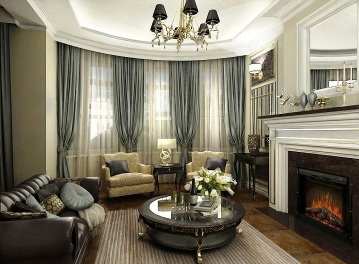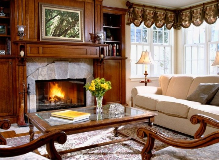 بالنسبة لغرفة المعيشة التي تحتوي على مدفأة ، فإن الخيارات المختلفة للستائر مناسبة ، اعتمادًا على التصميم الداخلي. بالنسبة للغرفة التي بها مرساة ، يمكن شراء أقمشة جيدة التهوية ؛ وستدعم المنسوجات الثقيلة النمط الإنجليزي. عند تركيب الموقد ، تذكر أن النيران الحية لا ينبغي أن تكون بالقرب من الستائر..