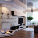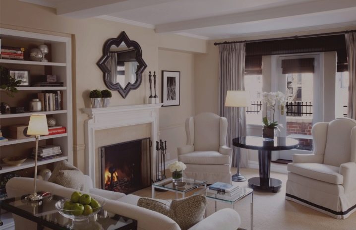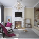 يمكنك اختيار أي تصميم لغرفة المعيشة مع مدفأة ، بناءً على التفضيلات والقدرات الشخصية..