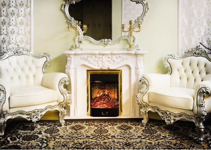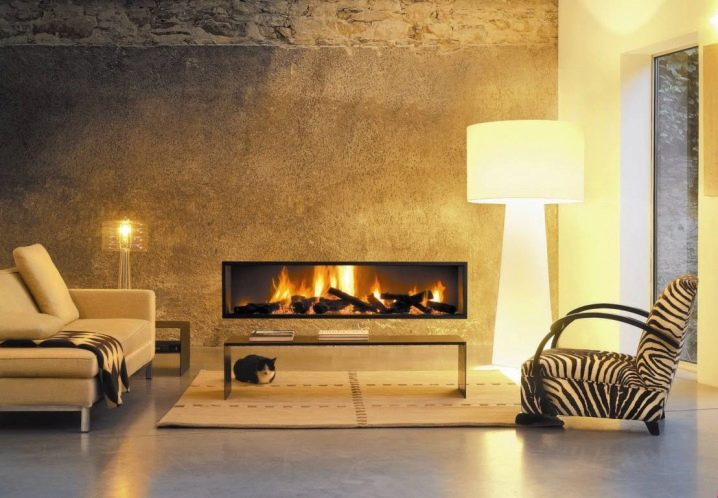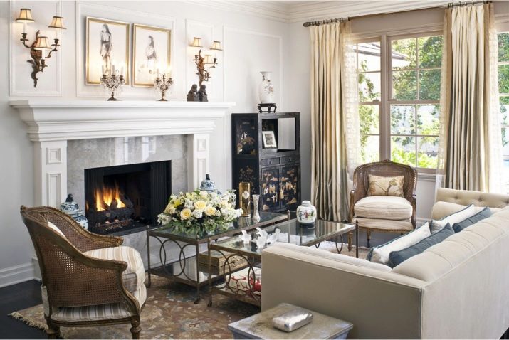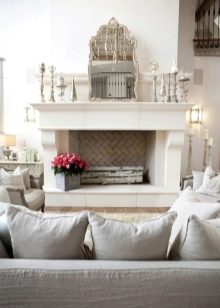 يختار مالكو المنازل والشقق الآخرون رثًا أنيقًا ، حيث يجب وضع كرسي هزاز وسجادة ناعمة بالقرب من المدفأة. شخص ما يحب غرفة المعيشة مع مدفأة على الطراز البيئي أو العكس ، سحر.