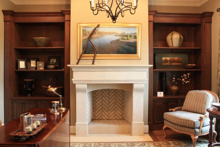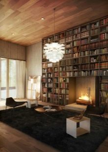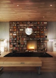 لا تزال غرف المعيشة مع المكتبة شائعة اليوم. في هذا الجزء الداخلي ، يجب استخدام بوابات حرق الأخشاب من النوع المغلق ، والتي يتم تثبيتها في الجدار. تستخدم الزخرفة المنحوتة كزخرفة. عادة ، توجد هذه البوابات في مبنى المكتبة المركزية..