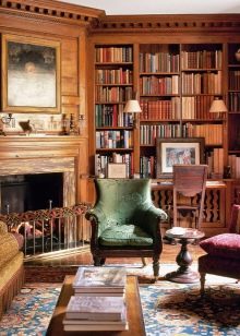 الهدف الرئيسي في النمط الإنجليزي هو خلق جو دافئ ودافئ يكون فيه الموقد هو النقطة المحورية. في هذا الجزء الداخلي ، يتم استخدام مواد ذات ألوان دافئة ، وكمية كبيرة من الخشب الطبيعي. المعجبون الحقيقيون بالأسلوب النبيل سيحبون هذا الحل..