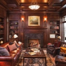 بالنسبة لمثل هذه الغرفة ، فإن الأسلوب الأرستقراطي الصارم مناسب ، باستخدام الألواح المصنوعة من الخشب باهظ الثمن ، والساعات ذات الطراز القديم ، وإكسسوارات رائعة للمدفأة..