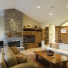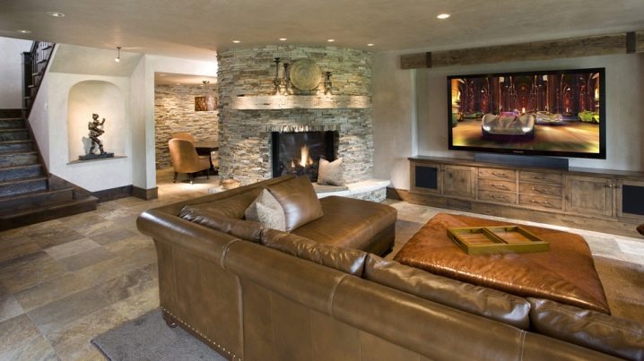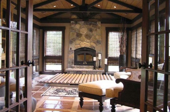 بغض النظر عن نوع الموقد الموجود في غرفة المعيشة ، يجب تزيين الغرفة بألوان مقيدة. للزينة ، استخدم فقط المواد الخام الطبيعية ، على سبيل المثال ، الخشب أو الروطان ، إلى جانب الأقمشة باهظة الثمن.