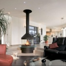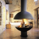 يُطلق على الموقد ، الذي يقع في وسط غرفة المعيشة ، مدفأة الجزيرة. هذا هو الخيار الأكثر كفاءة لتبديد الحرارة. في الوقت نفسه ، سيعتمد التطبيق العملي للتركيب في منتصف غرفة المعيشة بشكل مباشر على أبعاد الهيكل نفسه والغرفة..