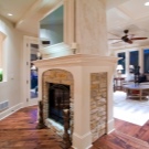 كما ترى بنفسك ، هناك العديد من أنماط المواقد التي يمكنك استخدامها لتجهيز غرفة المعيشة الخاصة بك بأي حل. يحب الكثير من الناس تصميم غرف معيشة كبيرة على الطراز الأمريكي ، حيث يتم الجمع بين الأسطح المنحنية والأعمدة الملتوية. أرفف خشبية جميلة فوق المدفأة أمر لا بد منه.