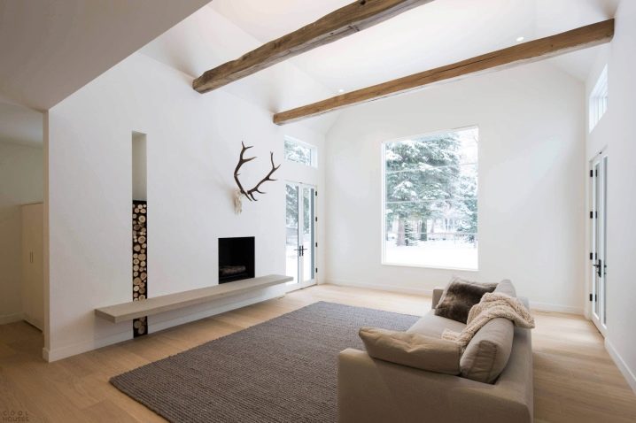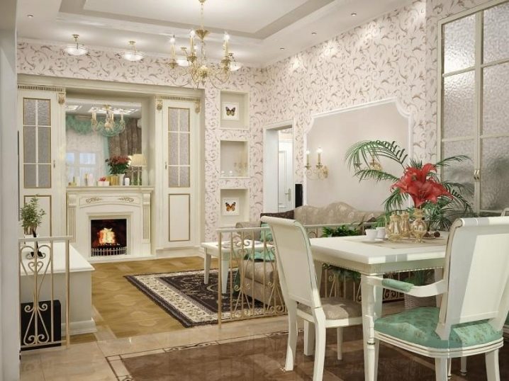 يبدو التصميم الداخلي الكلاسيكي رائعًا ، حيث يجمع بين شدة الأشكال ولوحة الألوان المحايدة والقوالب وعناصر الجص غير المزعجة. يتم مواجهة الموقد باستخدام الخزف الحجري أو المعدن والطلاء الخرساني.