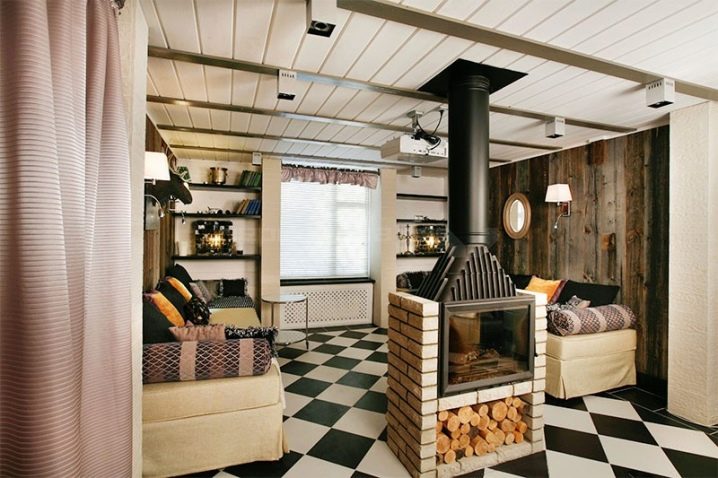 إذا كنت تحب الحلول غير العادية والغريبة ، فبالتأكيد ستحب أسلوب الدور العلوي في غرفة المعيشة مع مدفأة. هذا التصميم الداخلي هو مزيج من التكنولوجيا الحديثة مع التحف. يتجاوز الموقد في هذه الحالة المعتاد ، ويسمح لك بالنظر إلى الموقد بطريقة جديدة..
