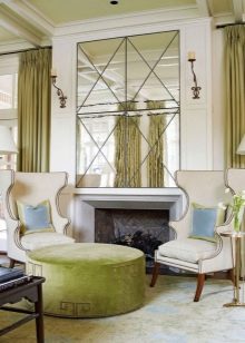 تقليديا ، يتم وضع المرآة فوق المدفأة. يأتي هذا التقليد من العصور القديمة ، عندما كانت الشمعدانات موجودة على رف الموقد. انعكست نار الشموع في المرآة ، وبسبب تكاثر النار انتشر الضوء في جميع أنحاء غرفة المعيشة.