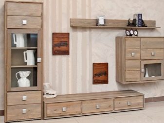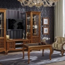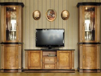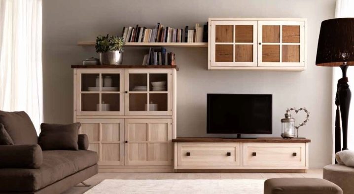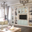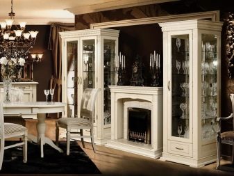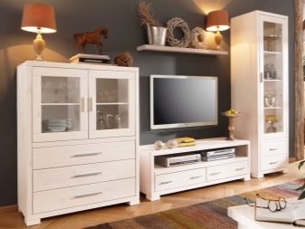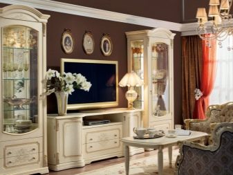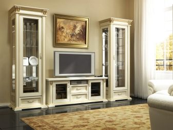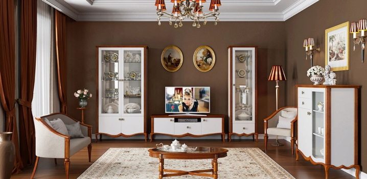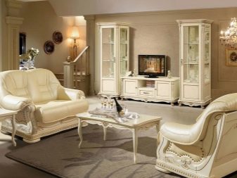 لأنماط فاخرة مثل إمبراطورية أو باروك, مجموعة بيضاء مع واجهات مزينة بالعديد من التفاصيل الزخرفية مع التذهيب مناسبة. يجب تمييز أثاث غرفة المعيشة للأنماط الريفية الإقليمية ، مثل البلد وبروفانس ، بالإيجاز وحتى بعض بساطة الأشكال. في بعض الأحيان ، تكون عناصر الأثاث قديمة بشكل مصطنع ، مما يؤكد على النمط الطبيعي للخشب الطبيعي..