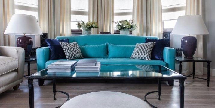 سوف يسود جو مريح دائمًا في غرفة المعيشة الفيروزية ، ولكن في نفس الوقت ، سوف يتشبع الأكوامارين بالطاقة ، ويشجع النشاط الإبداعي النشط..