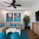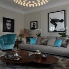 غرفة المعيشة بألوان الفيروز: قواعد التصميم