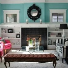 - يمكن أن يكون اللون الفيروزي هو اللون الرئيسي في الغرفة ، أو يمكن أن يكون مكملاً. في الحالة الأولى ، يجدر دمجها مع ظلال محايدة ، وفي الحالة الثانية ، باستخدام الملاحظات الفيروزية في الملحقات والعناصر الزخرفية..
