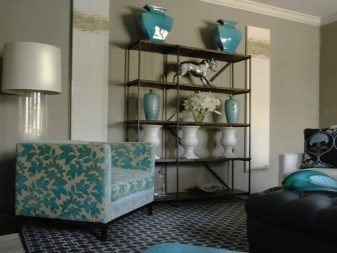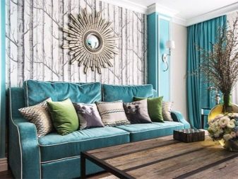 ستعمل ظلال لون الأمواج في إكسسوارات غرفة المعيشة على تحديثها وتنويعها. تسمح لك هذه التقنية البسيطة بتحويل غرفة بشكل فعال ، باستخدام الحد الأدنى من المال والوقت ، لأنه من الأسهل بكثير استبدال التفاصيل الزخرفية الفيروزية بأخرى بدلاً من إصلاح الشقة بالكامل..