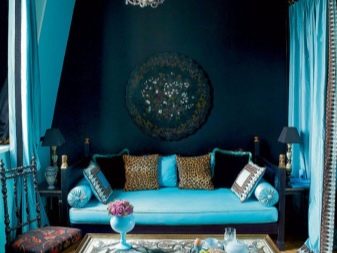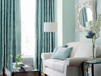 تجدر الإشارة إلى أن الأكوامارين مقبول إذا كان هناك الكثير من ضوء الشمس في الغرفة ، والإضاءة الاصطناعية الساطعة. لذلك ، حتى أعمق ظلال الفيروز ستبدو رائعة..