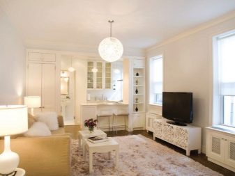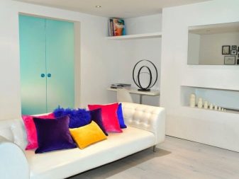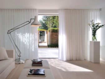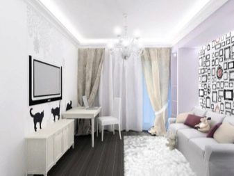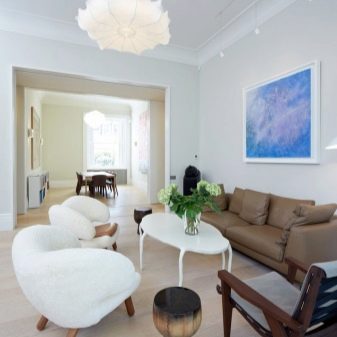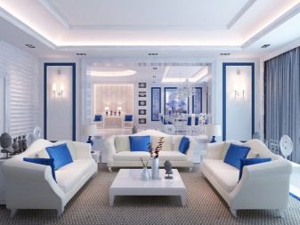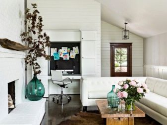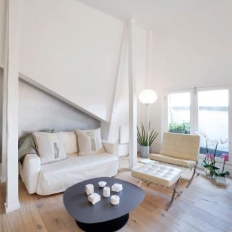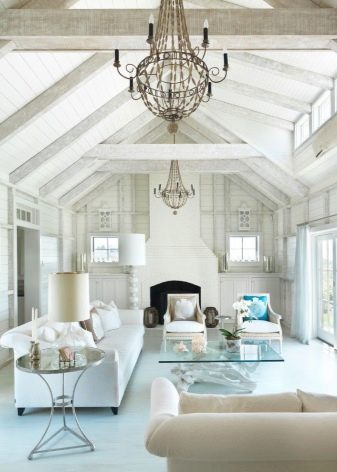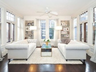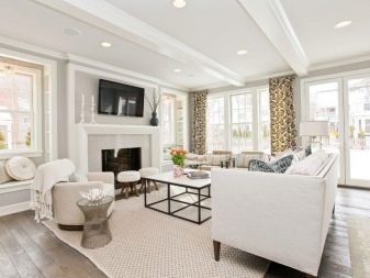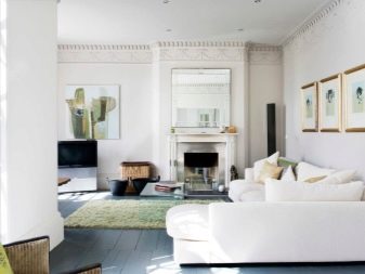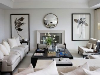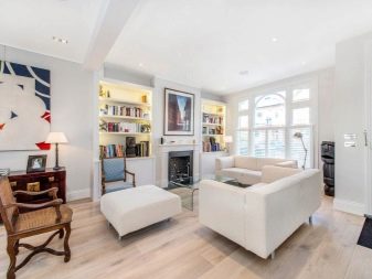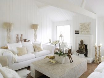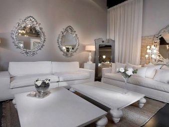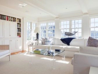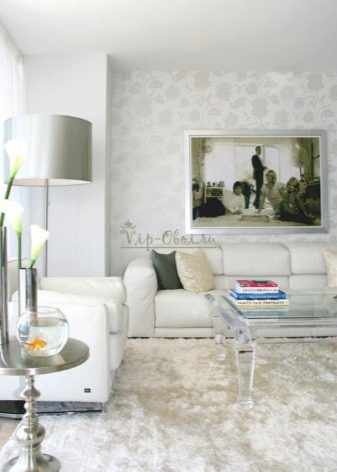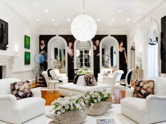 الداخل باللون الأبيض مليء بالهواء والضوء. إنها تؤكد على المكانة العالية لصاحبها ولا يبدو أنها غارقة. في السابق ، كان من الممكن العثور على هذا التصميم فقط في المجلات أو المنازل ذات المساحة الكبيرة. الآن تستخدم هذه التقنية غالبًا في تصميم غرف صغيرة الحجم من أجل زيادة المساحة بصريًا. فهم تعقيدات تصميم غرفة جلوس جميلة.