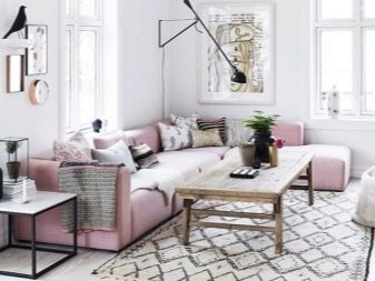 غالبًا ما يشار إلى هذا المزيج باسم كريمة الفراولة. ستضفي الظل البارد على غرفة المعيشة نضارة وحيوية ، بينما ستضفي الظل الدافئ لمسة من الراحة والهدوء. إذا كانت الغرفة تقع في الجانب الشمالي وهي مضاءة بشكل سيئ ، فيمكنك طلاء الجدران بصبغة وردية شاحبة. وبعد ذلك ستظهر جميع قطع الأثاث باللون الأبيض ، وتشع بالانتعاش والنظافة..