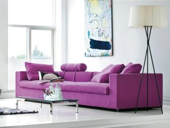 بالنسبة إلى الطبيعة الرومانسية ، فإن غرفة المعيشة البيضاء ، المكملة بلون أرجواني ، مناسبة. لون أرجواني يسير بشكل جيد مع الأبيض. حتى تشعر الغرفة بالراحة.