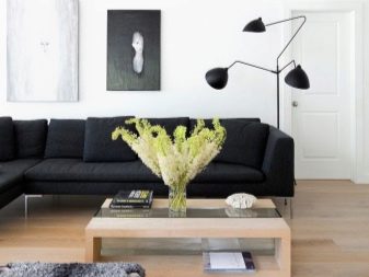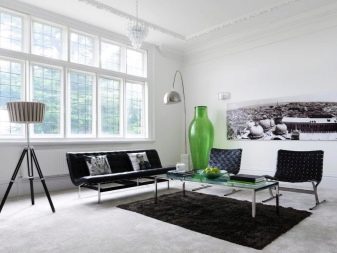 مزيج كلاسيكي أبيض وأسود أنيق وضبط النفس. ميزة كبيرة هي حقيقة أن الأثاث والاكسسوارات من هذا اللون معروضة للبيع دائمًا. يُفترض عادةً أن تكون الأرضية في الداخل مظلمة وأن تكون الجدران بيضاء. لا تسمح هذه المجموعة بتوسيع غرفة المعيشة صغيرة الحجم فحسب ، بل تتيح أيضًا تقليل الحجم الكبير جدًا.
