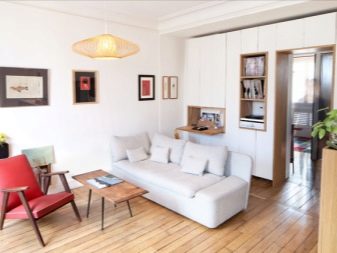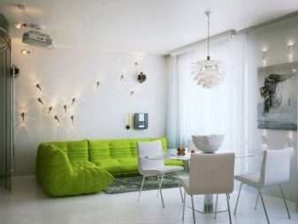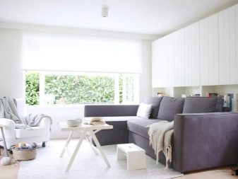 اختيار الأريكة يستحق اهتماما خاصا. ستبدو الأريكة البيضاء عصرية. وإذا سئمت من نظام الألوان هذا ، فيمكنك تغطيته ببطانية من أي لون آخر ، والحصول على غرفة حديثة بالفعل بأسلوب مختلف قليلاً. يمكن تنجيد الأريكة بقماش أو جلد صناعي أو طبيعي.