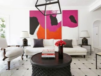 يمكن استخدام الأبيض كحل كامل أو شظايا. على سبيل المثال ، إذا كانت الجدران والسقف والأرضيات والأثاث أبيض اللون ، فسيكون الجو باردًا في مثل هذا الجزء الداخلي. لذلك ، في ظل هذه الخلفية ، يمكن أن تبدو اللوحات والمنحوتات وغيرها من الأعمال الفنية الطليعية رائعة. إذا ظهر اللون الأبيض محليًا ، على سبيل المثال ، الجدران والأرضيات فقط ، فيمكنك تخفيفه بألوان الباستيل الناعمة..