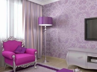 إذا كانت ورق الحائط الأرجواني باهظًا جدًا بالنسبة لك ، فيمكنك نقل هذا اللون إلى الستائر أو العناصر الزخرفية..