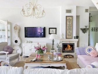 سيبرز الديكور الريفي متعدد الألوان بشكل فعال في الثنائي مع الداخل الأبيض الثلجي. تنوع أغطية الأسرة المرقعة والوسائد المطرزة والسجاد نظام الألوان الصارم. سيتم نقل جو الحياة في الضواحي من خلال الزخارف الزهرية والزهور في الأواني الفخارية. حيث من المهم أن يكون اللون الأبيض هو اللون السائد في التكوين الداخلي لغرفة المعيشة.