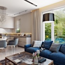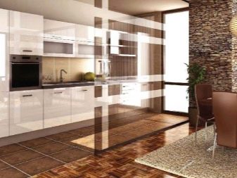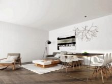 بالإضافة إلى ذلك ، يمكنك اختيار مكان للعمل في غرفة المعيشة الفسيحة أو ببساطة تقسيمه بحيث يكون لكل فرد من أفراد الأسرة مساحة خاصة به للاسترخاء. يمكن أن تكون الأمثلة ذات الأرضية الملونة مثيرة للاهتمام ، بمساعدة المناطق المميزة ، مع لون الجدران وملمسها. في بعض الأحيان يستخدمون تقنية ذات قوة ولون إضاءة مختلفين – في منطقة الترفيه يمكن أن يكون الضوء خافتًا ، لكن في المطبخ وفي منطقة العمل ، من المفيد تركه ساطعًا.