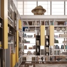 تتميز القاعة على الطراز الحديث بقطع الأثاث المصنوعة من الخشب واللوح الخشبي والبلاستيك والحجر الصناعي والمعدن والزجاج..