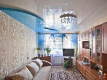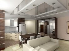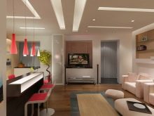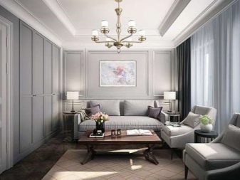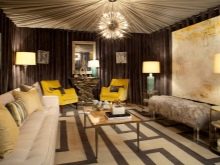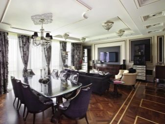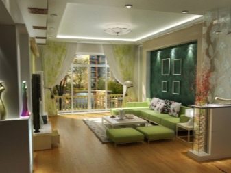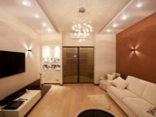 علاوة على ذلك ، إذا كنت ترغب في تقسيم الغرفة إلى مناطق ، فمن الأفضل استخدام ثريات أو ثلاث ثريات منفصلة ، والتي تختلف في أنواع الإضاءة..